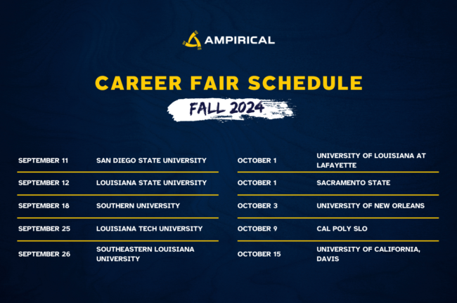 Opportunity Awaits: Ampirical’s 2024 Fall Career Fair Schedule NewsBy adminSeptember 6, 2024Ampirical is excited to announce our participation in ten career fairs this fall!