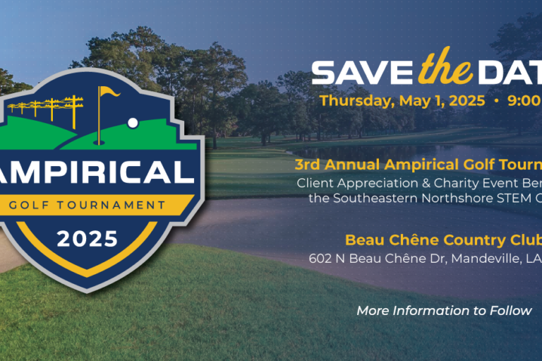 Save the date for Ampirical’s 3rd Annual Client Appreciation & Charity Golf Tournament on May 1, 2025, supporting the Southeastern Northshore STEM Center.